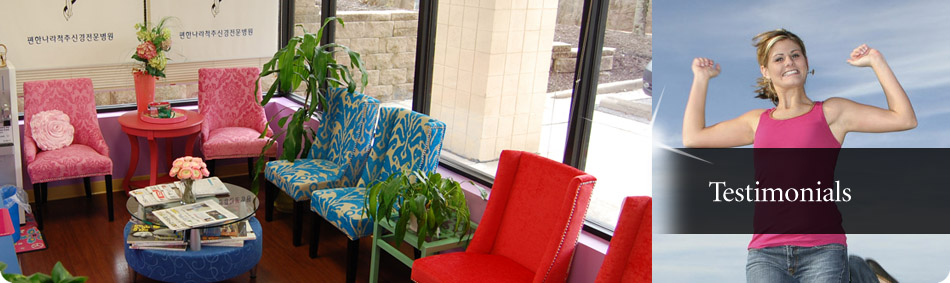 ![]() As an avid adventurer, I come across many injuries. If it can be sprained, pulled, torn, bruised or broken, I've done it. But Dr. Min's commitment to helping meimprove my health only so I can injure myself again is one the reason why I keep coming back. Dr. Min's expertise and willingness to provide me with his undivided attention and time is a true testament to why he is such a great doctor. But not only am I very pleased with Dr.Min's treatment and diagnosis but also with his staff. The office personnel are very c?니rteous and professional. The office personnel are very convenient for typical 9-5'ers and making an appointment is a breeze. ![]() This is my second time coming here, once in 2010 and 2012,for rear end accident. I first came here looking for a professional chiropractic center. After few treatments at the chiropractic, I was glad of my choice choosing Care-free Land Chiropractic. The office was clean, quiet, and relaxing. The doctors knew what they were doing, figured out what exactly was wrong with me, and the nurses were all very friendly and nice. As a result, I chose to go to Care-free Land Chiropractic the second time I got in an accident And called the, for appointments right away. I currently am going here for my treatments for my neck, shoulder, and back, and I can feel myself getting better after every visits. I would definitely give 5 stars for environment, people, and tools used. ![]() More Review |